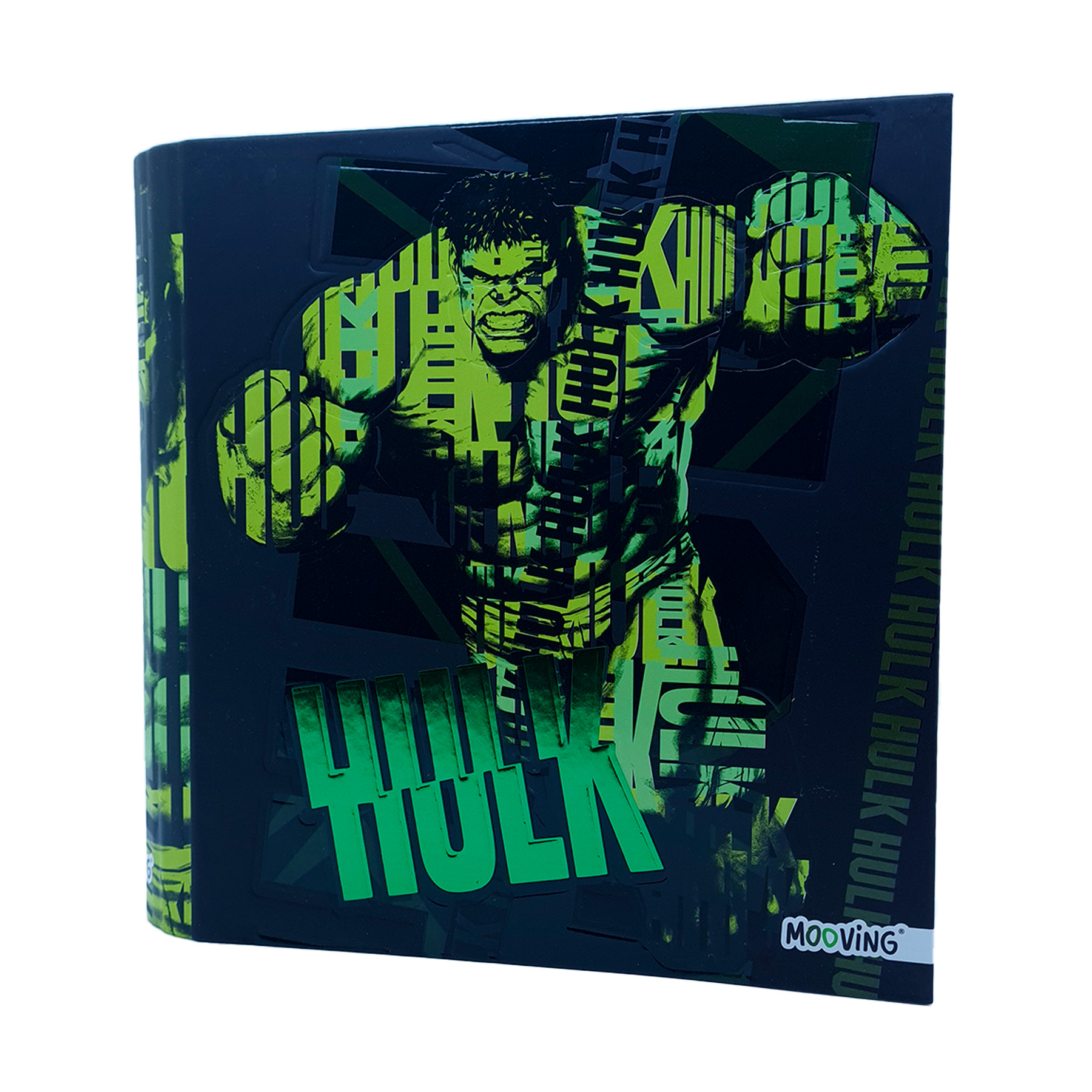 te presentamos la novedosa carpeta Marvel en tonos blanco y gris, con detalles sutiles y el icónico cartel de Marvel en rojo y blanco.
