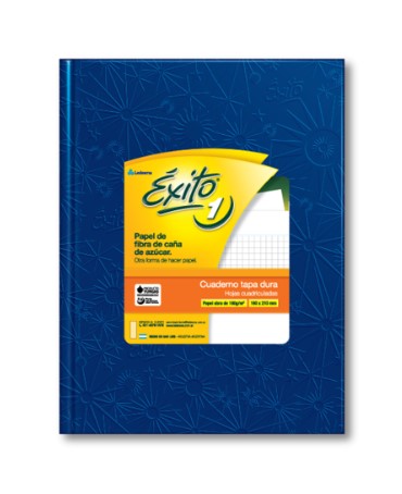 El Cuaderno Éxito N°1 presenta una tapa dura forrada en papel araña de color azul, con cuadrícula en sus 48 hojas. Es una excelente opción para organizar tus notas y trabajos de forma ordenada y profesional.
