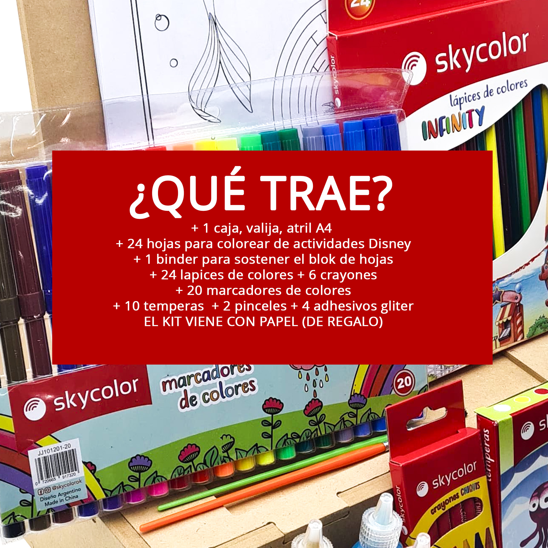 Kit Escolar Caja Infantil Atril + Hojas Para Pintar Disney es ideal para estimular la creatividad de los niños. Incluye materiales variados para colorear y pintar, perfectos para horas de diversión y aprendizaje. ¡Una excelente opción para regalos y actividades educativas!