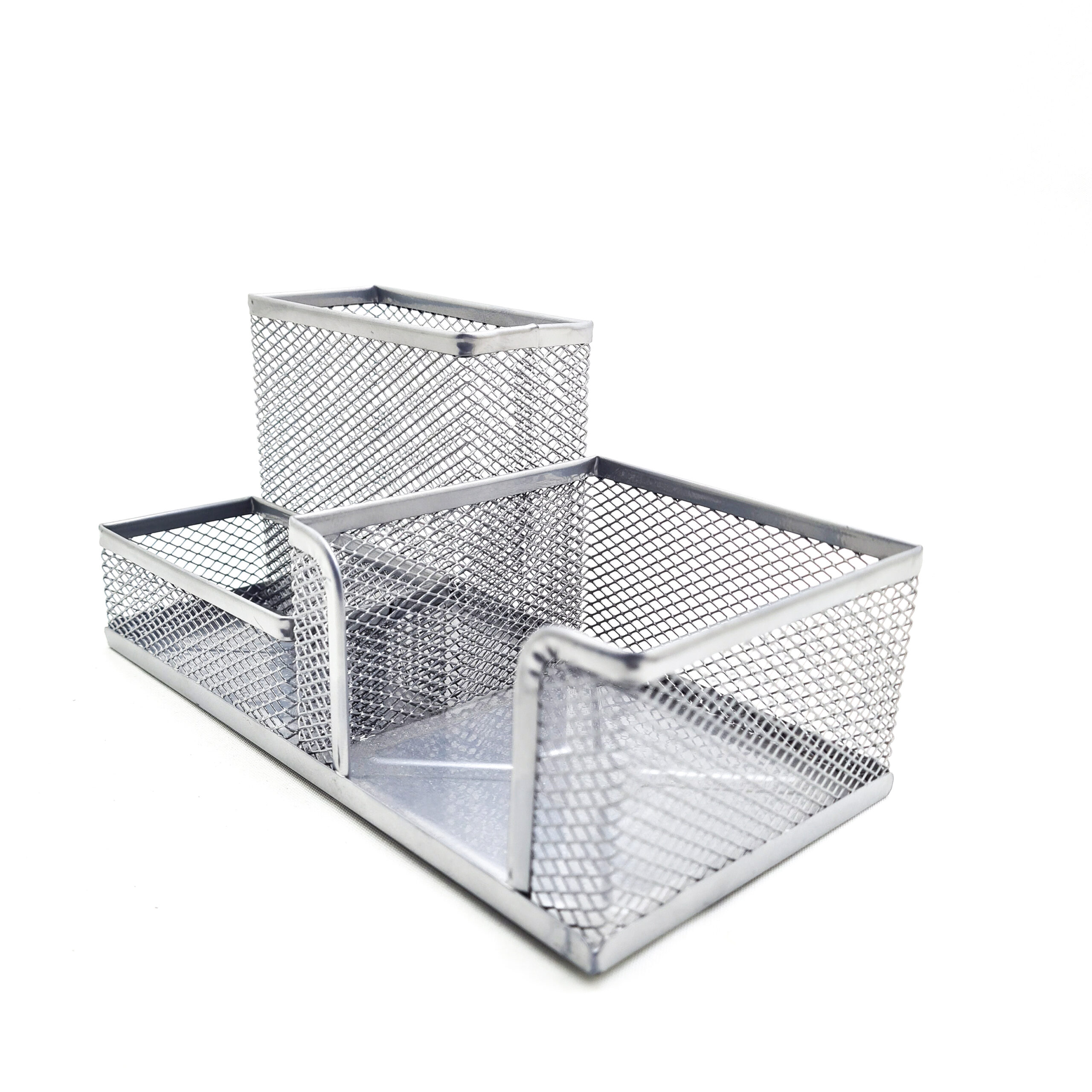 Optimiza tu espacio de trabajo con nuestro Organizador de Escritorio de Malla Metálica, disponible en color plata. Con tres compartimentos espaciosos y un peso ligero de 200g, este accesorio no solo añade estilo a tu escritorio, sino que también mantiene tus elementos esenciales organizados y al alcance de la mano.