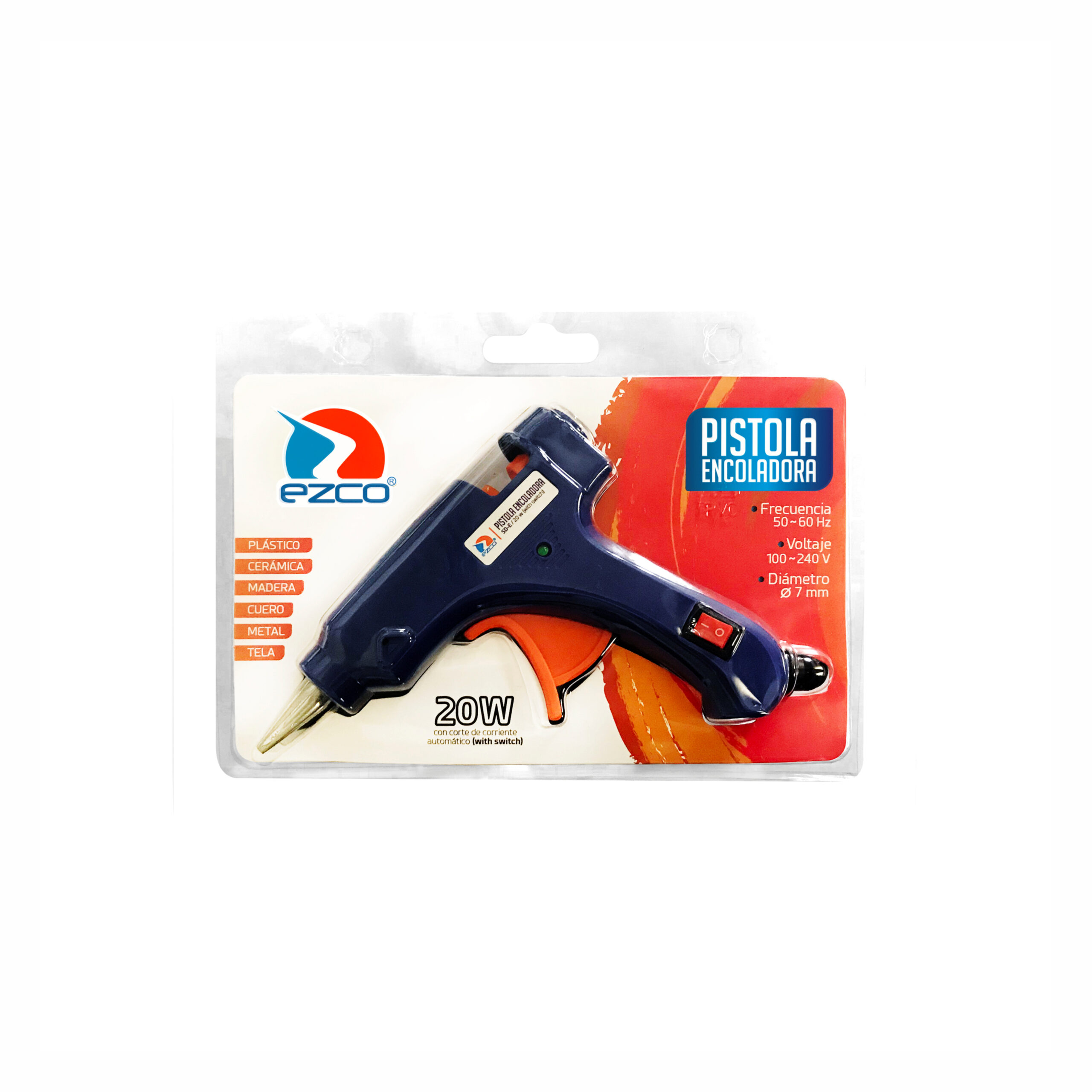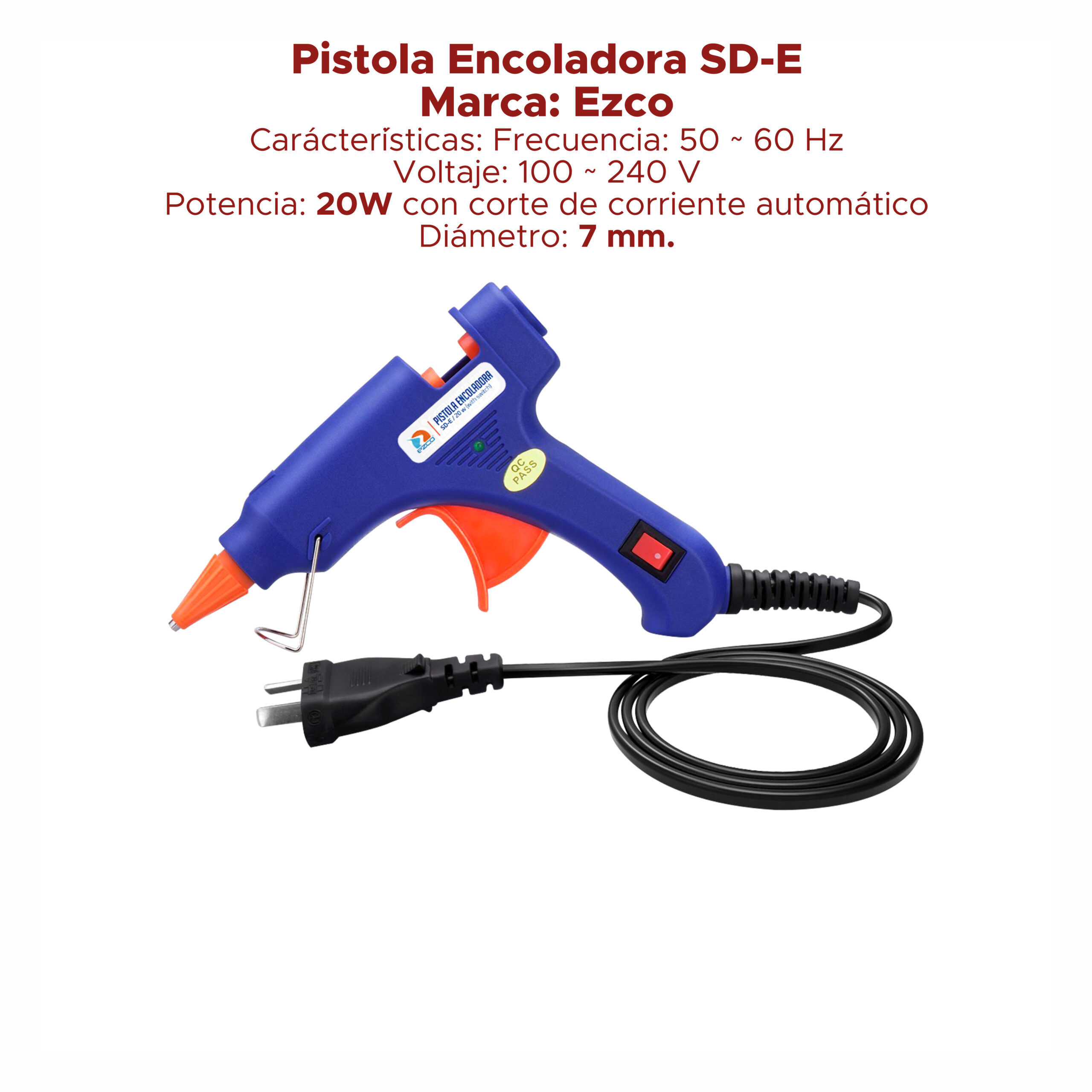 istola encoladora Ezco chica para barras de silicona de 7 mm. Ideal para trabajos manuales y reparaciones rápidas. Compacta, ligera y fácil de usar, garantiza un pegado preciso y seguro en diversos materiales. Diámetro: 7 mm. Voltaje: 100-240 V. Frecuencia: 50-60 Hz.
