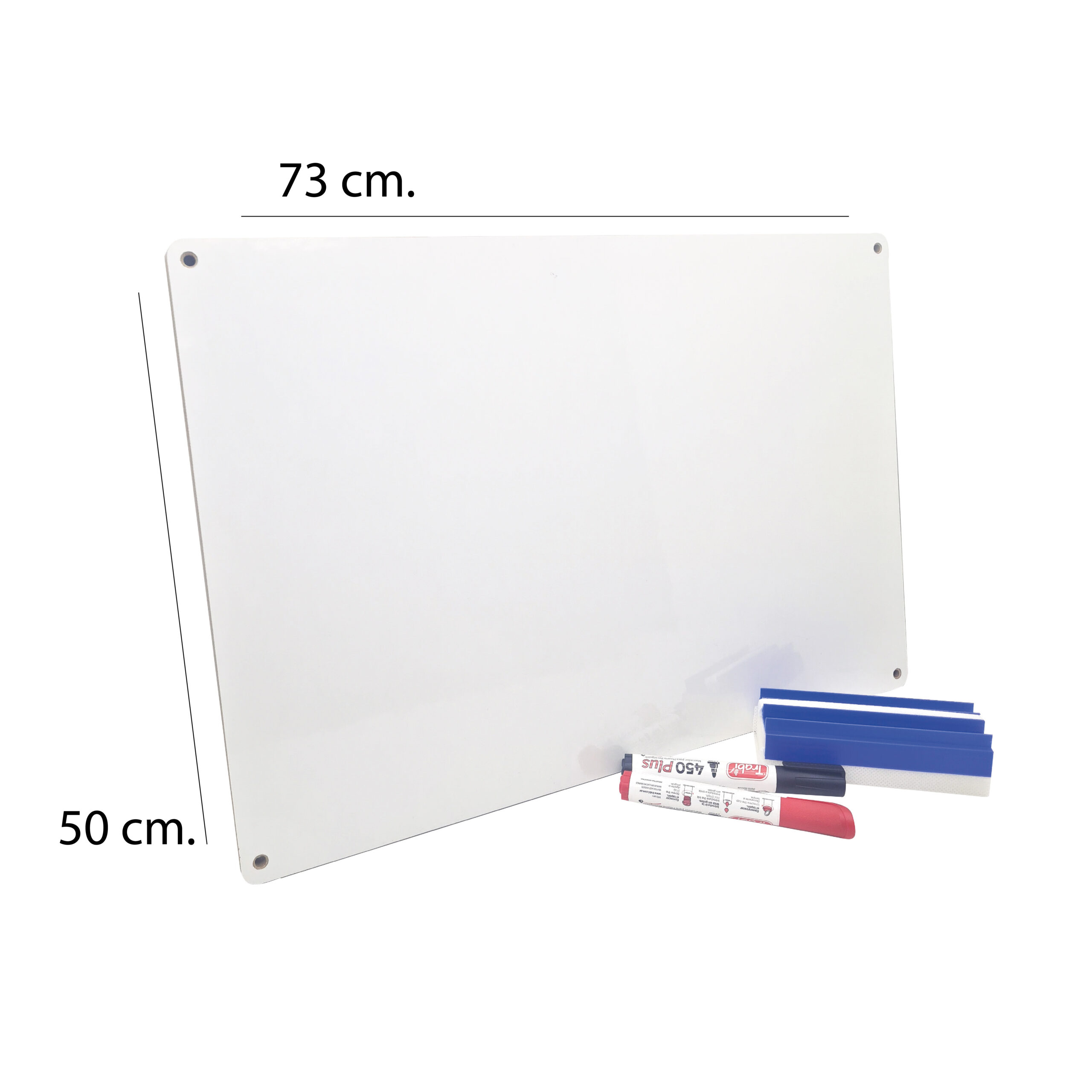 Te presentamos la Pizarra/Pizarrón Blanca 50×73. incluye 2 marcadores y un borrador. Con 4 orificios para atornillar, se puede montar tanto horizontal como verticalmente. Fabricado en MDF de 12 mm con una placa de fórmica en la parte frontal para escribir. Ideal para uso en el hogar, la oficina o el aula, para notas, listas o dibujos.
