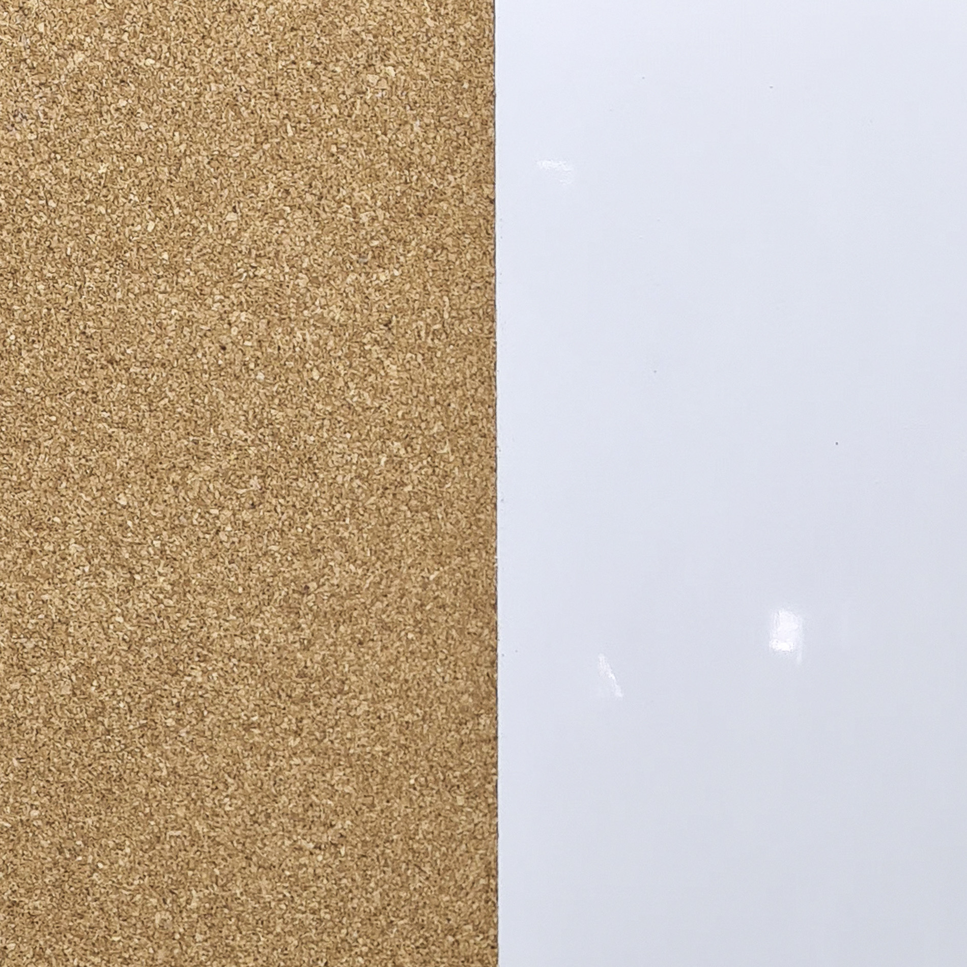 🎯 Pizarra combinada 2 en 1: Superficie blanca para marcadores y tablero de corcho para notas y documentos.