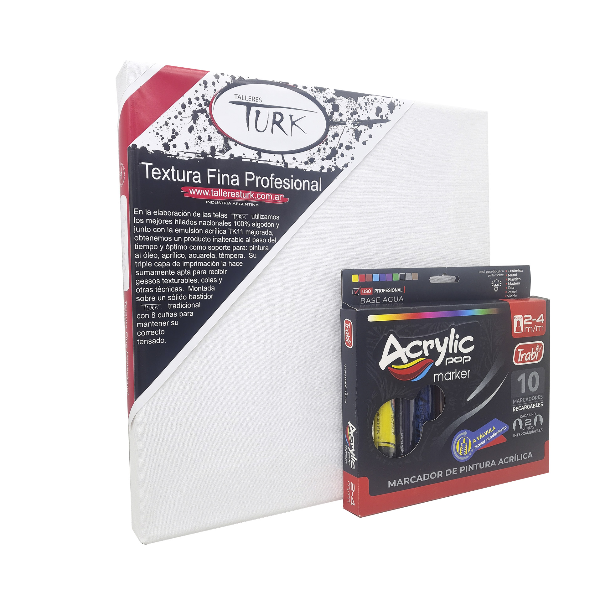 Kit de arte simple con fibrones acrílicos de doble punta y bastidor de 30×30 cm. Ideal para crear obras con colores vibrantes y trazos definidos en un lienzo de excelente calidad.